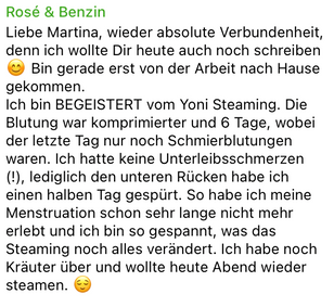 Auch fortgeschrittenes Steaming ersetzt nicht den Besuch beim Gyn deines Vertrauens. Bei starken und Beschwerden und Erkrankungen ist dies vorher abzuklären.